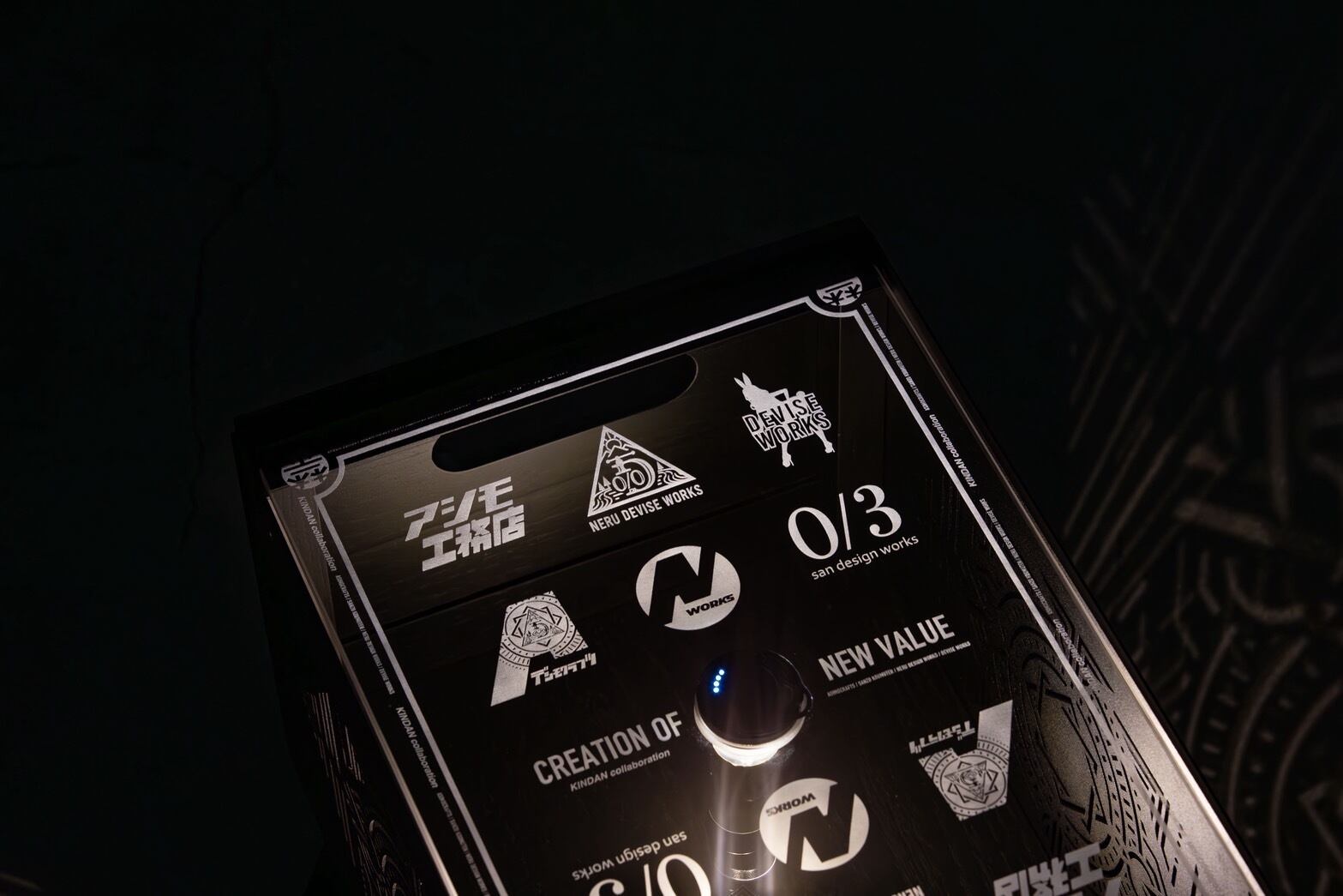 (下からライトアップするとより綺麗にロゴが浮かびあがります)